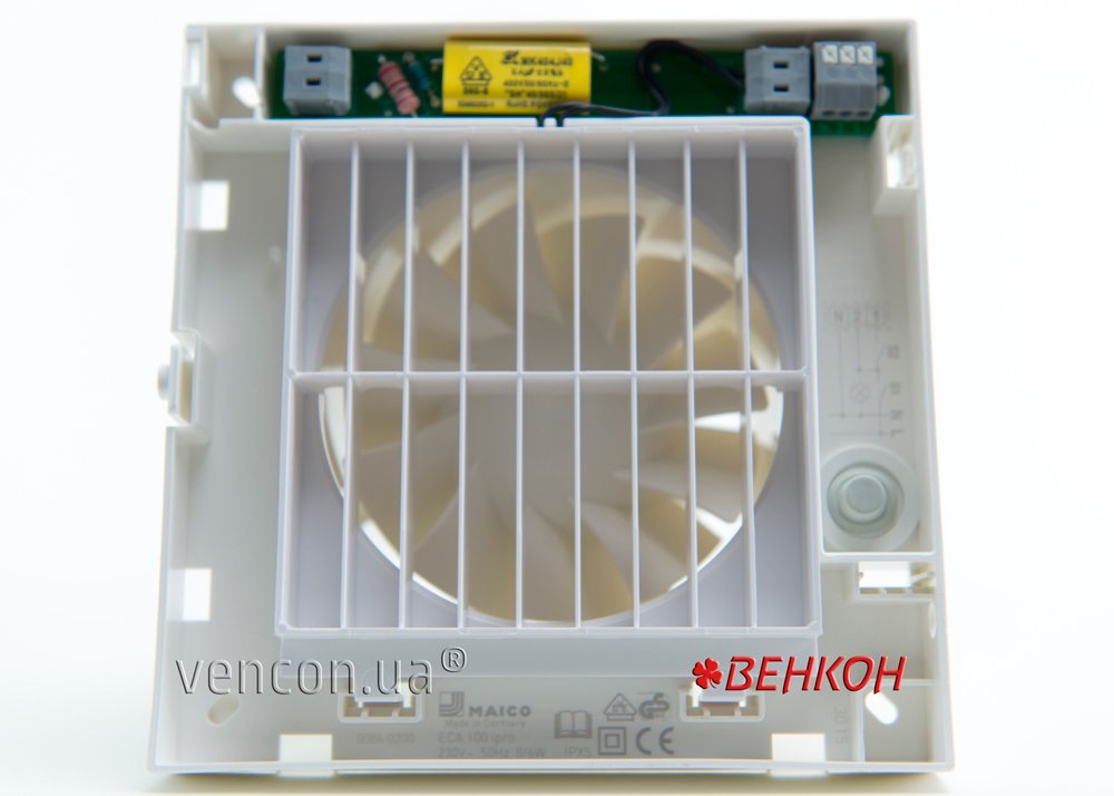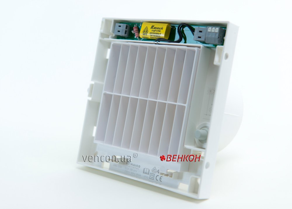 Минималистичный дизайн. В отличие от традиционных устройств, лицевая поверхность этого бытового вентилятора не имеет вентиляционных решеток – плавно изогнутый плоский профиль панели из белого ударопрочного пластика прекрасно впишется в современные интерьеры. Более того, если вы ищете устройство по принципу «установил и забыл» – это отличный выбор, ведь в уходе этот вытяжной вентилятор MAICO весьма неприхотлив!